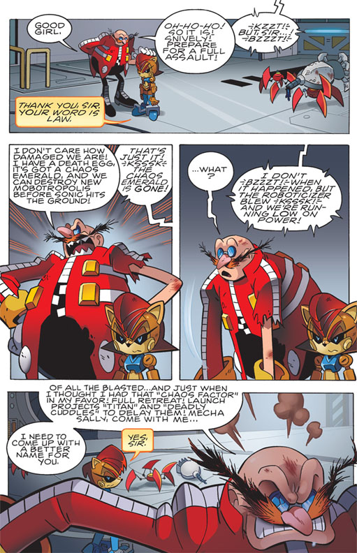 "Lost in the Moment": The world is safe - but at a terrible cost. As Sonic tries to rally the Freedom Fighters, Dr. Eggman unleashes his Titan Metal Sonic on the city! Can our heroes salvage the fight, or is there just too much chaos to handle? Then, in "Haunted," the effects of "Genesis" bring back some old problems for Ixis Naugus.