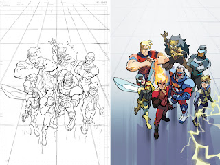 Hey guys! Just wanted to share with you the raw artwork to the recently solicited Sonic the Hedgehog #241 cover that I colored, from Archie Comics! I had a great time with this one - it's a "big hero moment" with all three of the current Freedom Fighting teams together.