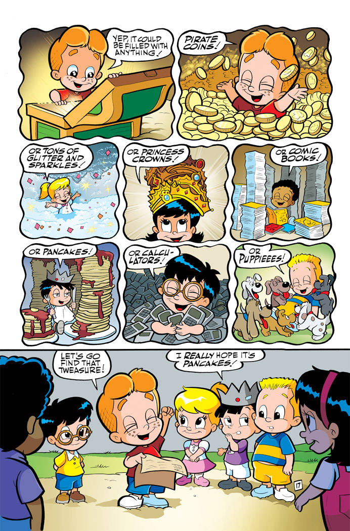 Another of the Muppet Babies style imagination sequences which I love so hard - my favorite of them, in fact. You may also notice that in this and the previous chapter that everything is almost always full-bleed now, as opposed to having those nice, cushy white margins along the sides. I kinda' miss 'em, but my guess is that it was a necessary change given the number of panels-per-page this series had.