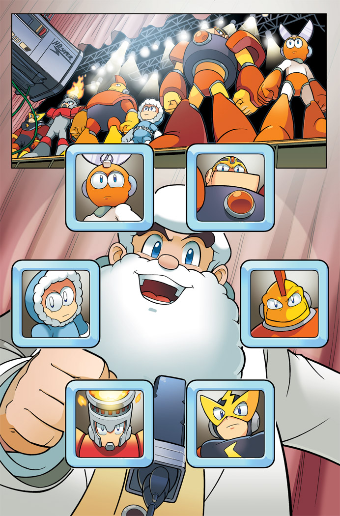 Of all the video game nods to make it in, I am overjoyed and absolutely tickled that we managed to put the stage selection screen into comic book form. It’s been years since I played Mega Man 1 – did we get the positioning on the Robot Masters right??
