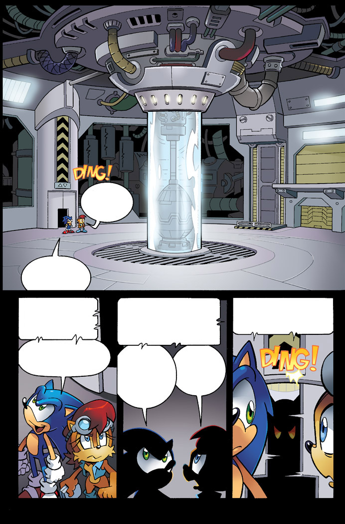 Over the phone, my editor Paul informed me that this was the issue that we were killing off Princess Sally. ...Sorta'. Actually, to commemorate the 20th Anniversary, this issue was going to launch us into a retro-themed flashback to an alternate reality Mobius for a four issue arc. True to the biz, this milestone was gonna' be the big game-changer leading into the next few years: Eggman's back. The Death Egg is back. Naugus is looking to be crowned king and Sally's fate is...? All would be revealed just a handful of months later.